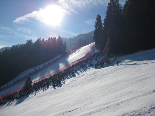 Nach den vielen Ausfällen von Abfahrtsrennen in diesem Winter war mancher skeptisch geworden. Während dem Mittagshalt vergassen einige den Hunger, denn sie schauten das Abfahrtsersatzrennen für Bormio auf der Hahnenkammstrecke an. Spätestens jetzt kam auch bei den Nichtskifans Weltcupstimmung auf. Wer wird wohl das Siegerpodest besteigen? Werde ich dem Sieger gratulieren können und von ihm ein Autogramm ergattern? Insbesonders die weibliche Begleitung dachte an Bilder für das Erinnerungsalbum, allerdings für die Kinder zu Hause!
