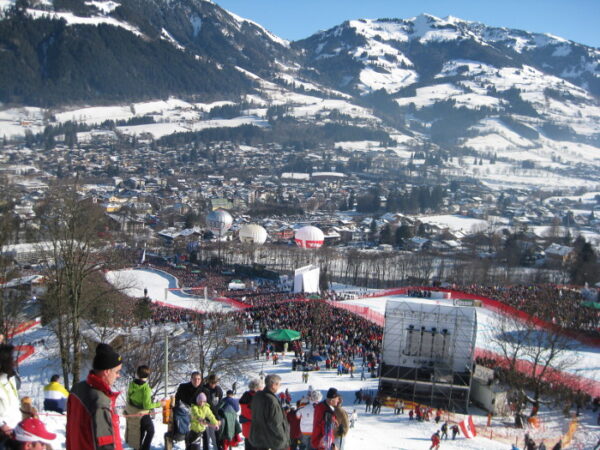 Der folgende Tag war zur freien Verfügung. Es bildeten sich kleinere und grössere Gruppen, die sich nach Kitzbühel ins Zielgelände begaben. Die Mehrheit der Beteiligten liess es sich nicht nehmen, bis zur Hausbergkante aufzusteigen und somit die Steilheit der eisigen Rennstrecke zu erfahren. Von diesem erhöhten Standort aus konnte man bei herrlichem Sonnenschein den Super-G verfolgen. Nach dem Rennen waren die Glühwein- und Markstände die Anziehungspunkte. Bei der Siegerehrung und Startnummernabgabe für die Abfahrt vom Samstag im Zielgelände konnte man nochmals Weltcupatmosphäre geniessen. Nach kürzerem und für einige längerem Aufenthalt in Kitzbühel ging der zweite erlebnisreiche Tag zu Ende.